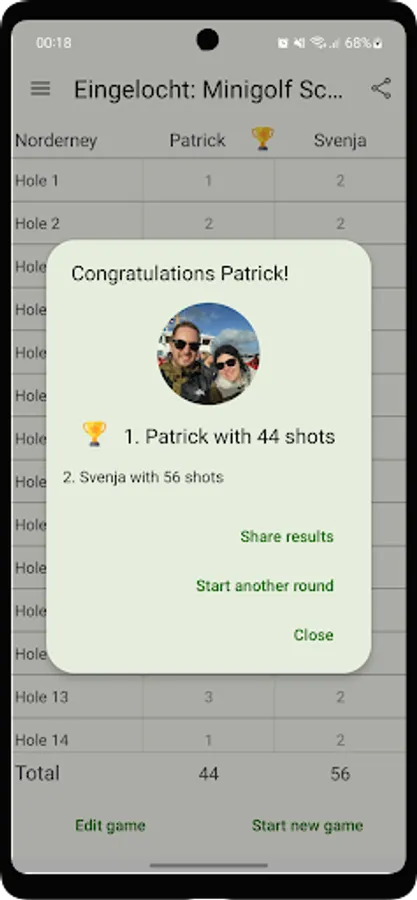 ✔ share the results of your minigolf game with your friends