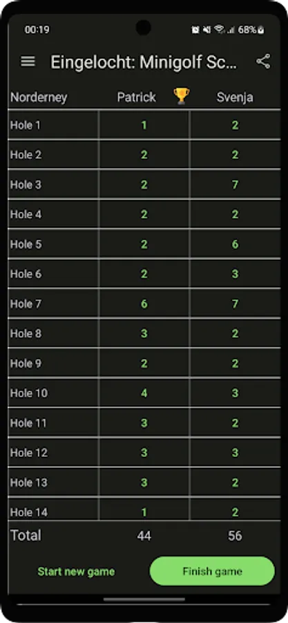 Note the scores of your minigolf game on the smartphone and get statistics for every player and all played games.