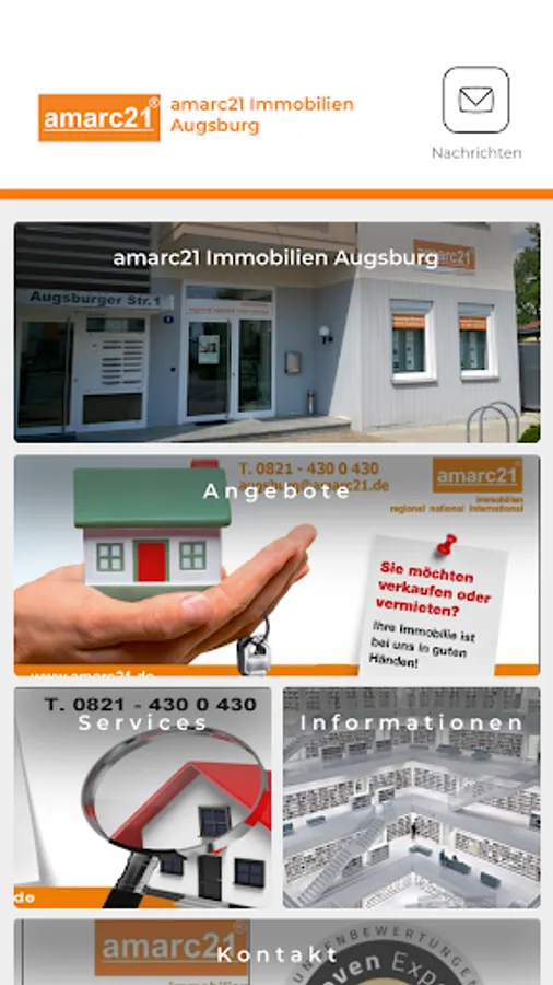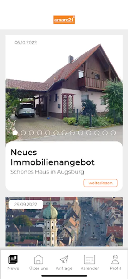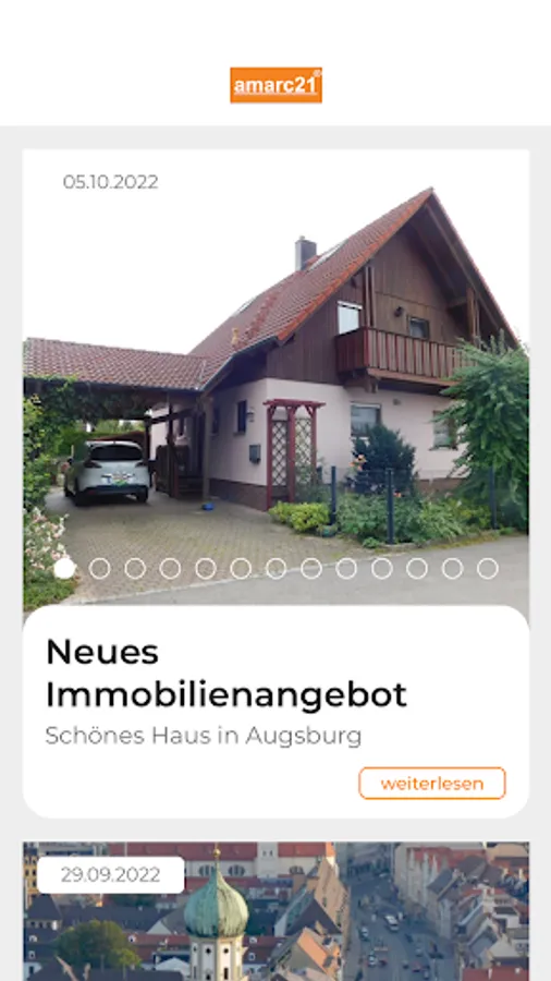 With the Augsburg real estate app, you always have the app of your amarc21® real estate agent from Augsburg and the surrounding area with you. Here you will find our current purchase and rental offers as well as numerous services such as our real estate value calculator, an online application for an energy certificate and extensive information on specialist topics relating to real estate.