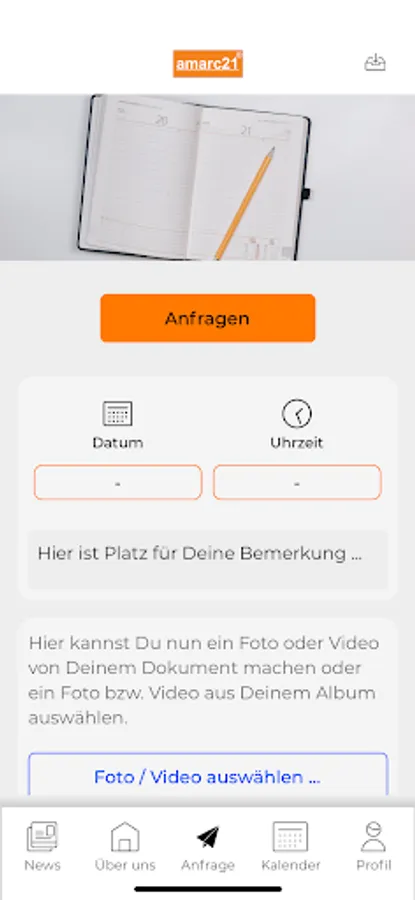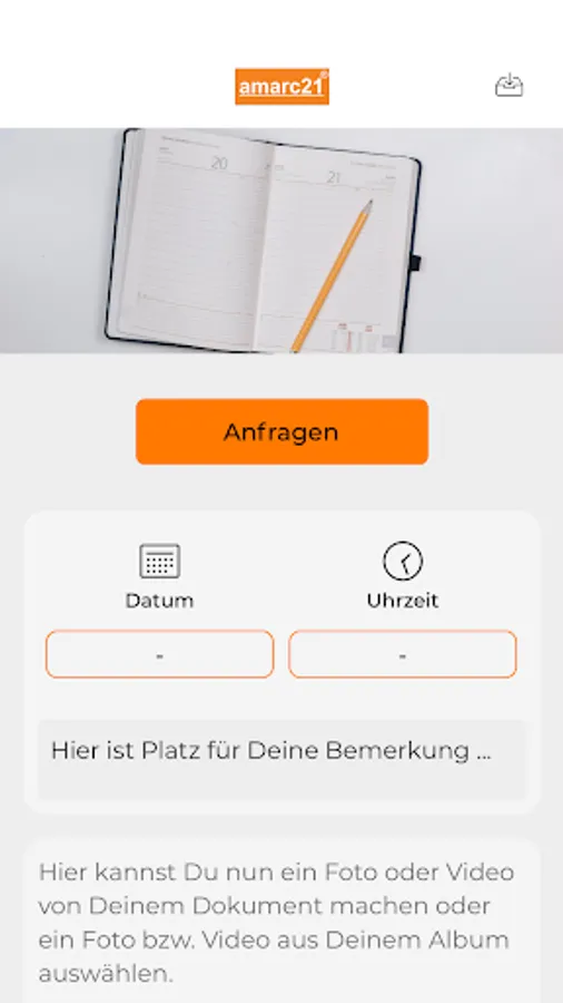 Send your amarc21 team inquiries smartly and easily via app. With the request tool, you can send this anytime, anywhere.