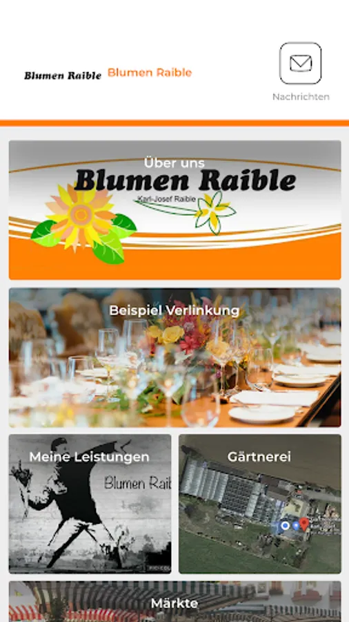 Digital business card, an overview of all Blumen Raible floristic services and offers, the team of employees, videos, documents or websites - in your home view you can quickly and easily get the information you want from Blumen Raible. You have everything you are interested in directly in the app.