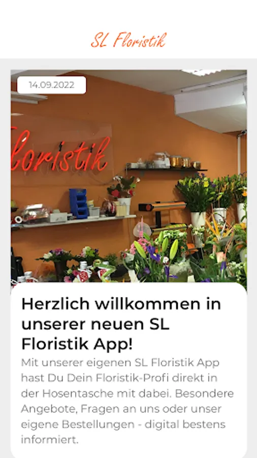 Special offers, important information and always up to date - In the newsfeed you can search for the most important SL Floristry information 24/7. With the push notification function, you get all the essential news in the quickest and easiest way directly to your smartphone.