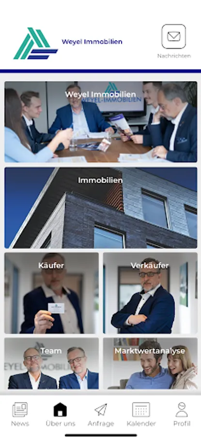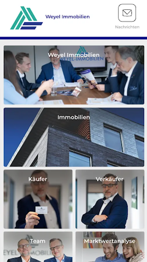 Digital business card, an overview of all Weyel-Immobilien services and offers, the team of employees, videos, documents or websites - in your home view you can quickly and easily access the Weyel-Immobilien information you want. You have everything you are interested in right in the app.