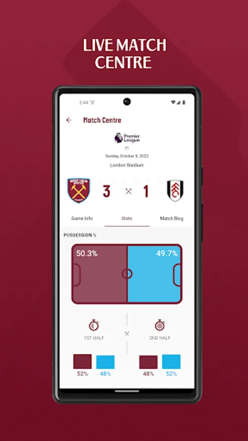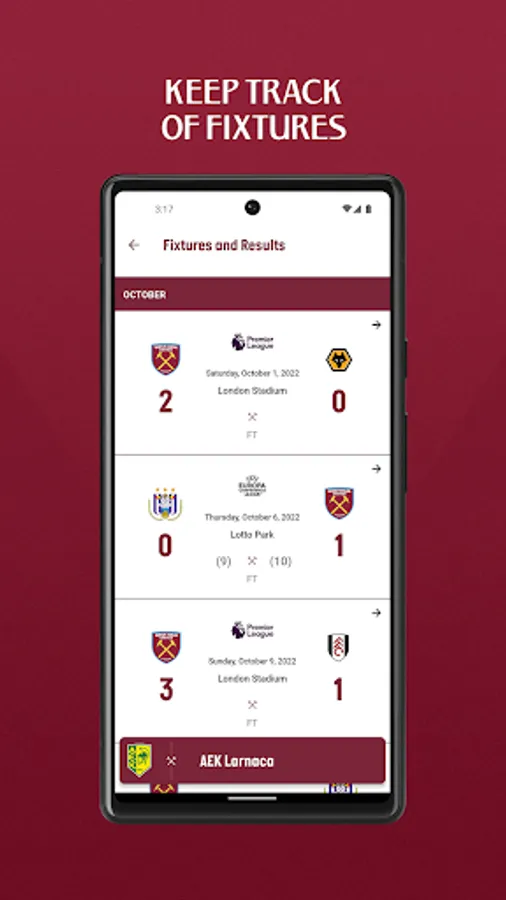 The West Ham United Official App brings you closer to your Club. You can keep up to date with exclusive App content, an in-depth Match Centre, West Ham TV video and more in a user-friendly Android mobile experience.
