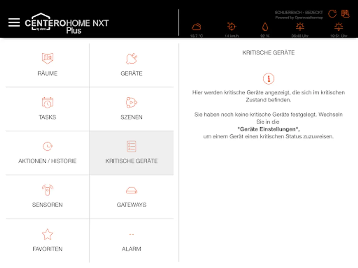 Thanks to push-up messages or e-mails, you know exactly what's going on at home. The app also informs you when devices are in a critical position.