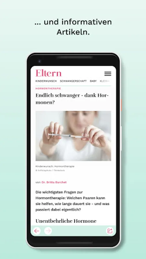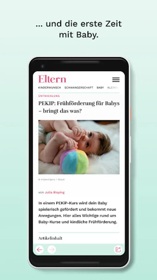 Do you want to find out more quickly before the check-up in the waiting room at the gynecologist? Or are you traveling and want to know which tea is good for the baby bump and which medications breastfeeding mothers can take? Or your baby has finally fallen asleep in the stroller - and you want to click your way through the latest photo series on the next park bench in peace? With the app from Eltern.de you have the solution in hand.