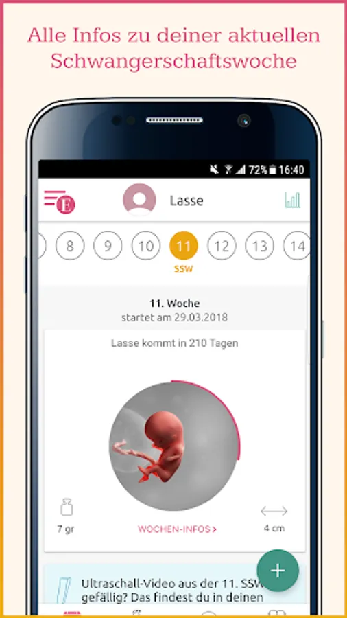 You're pregnant? Congratulations! Then our app accompanies you through 40 exciting weeks of pregnancy.