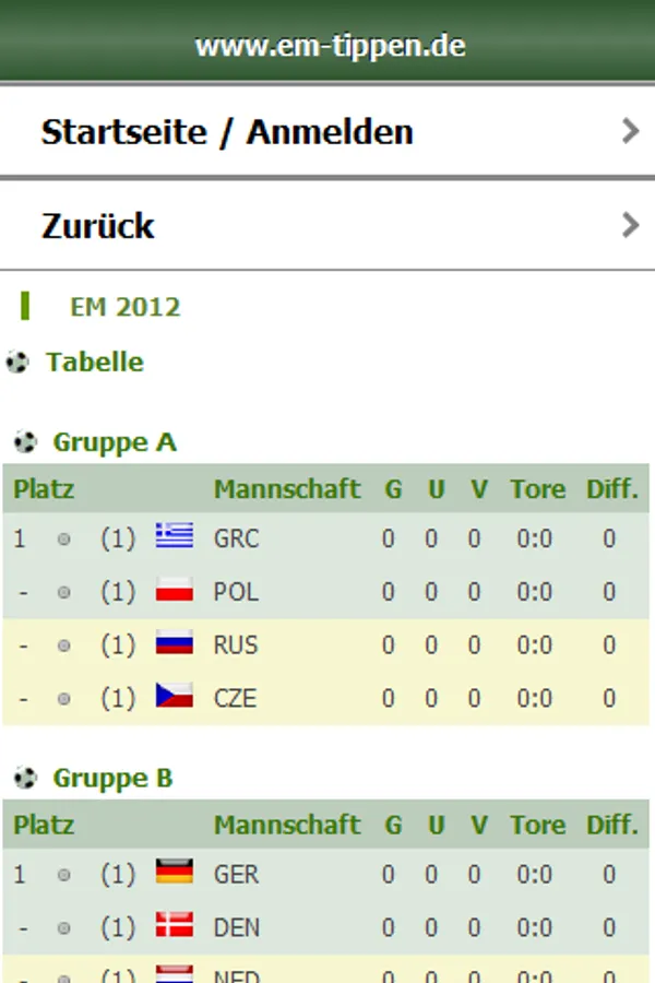 In addition to the betting game, you will also find fixtures and tables of the European Championship and World Cup tournaments in our app, which can be typed at the moment.