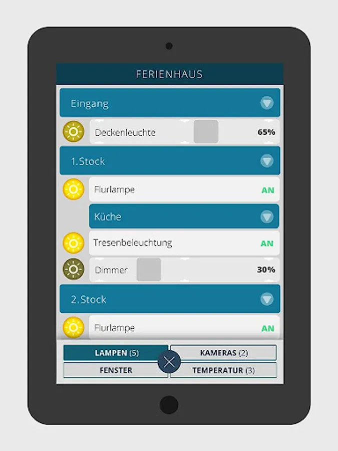 With Eltako GFA is a location independent visualization and management of all objects like switches, sensors or actuators in houses and other buildings, provided.