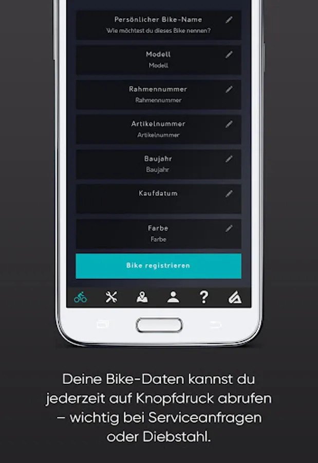 Bike registration via code scan with the integrated scan function, bike data in the event of theft with one click as a PDF for the police or your insurance company to your email address.