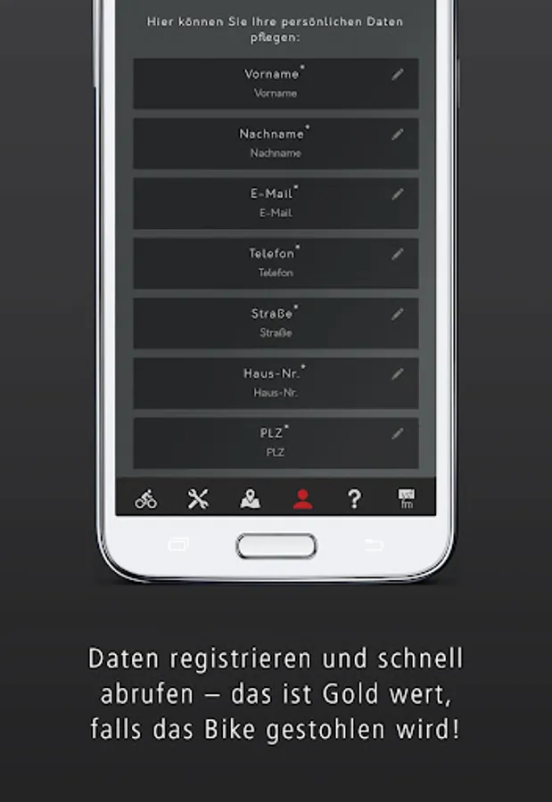 The app for wheels Fahrrad Manufaktur combines many advantages: Register via the app your bike in the bike vsf manufactory. If your bike has been stolen, you can quickly retrieve your personal data and the serial number of the bike in a PDF report for the police.