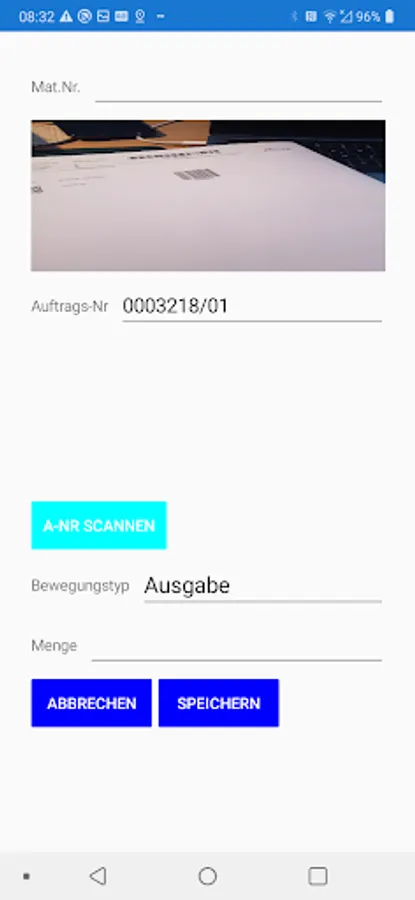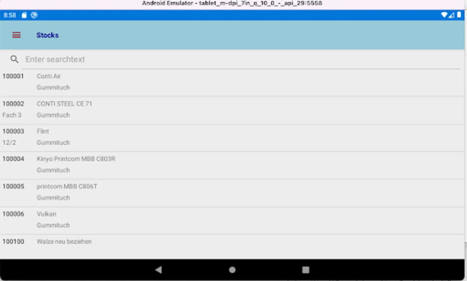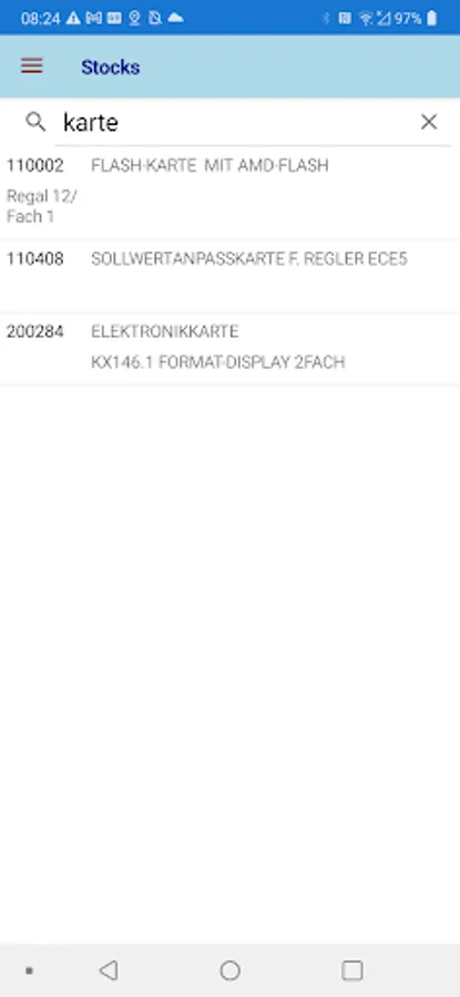 The app communicates with a server that transmits warehouse data. The app can then be used to search for parts, withdrawals and returns of parts can also be documented using QR or barcodes, and inventory can be carried out using QR or barcodes. Recorded data is temporarily stored in the app and transferred to the server when connected to the server.