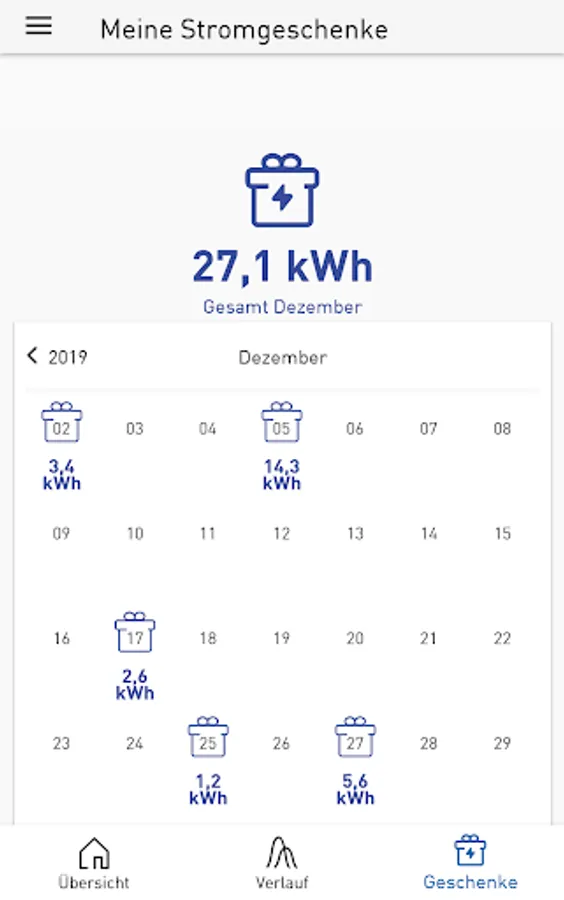 4. EnBW gives you on overload in the power system regularly current gifts. These gifts you can view using the calendar function.