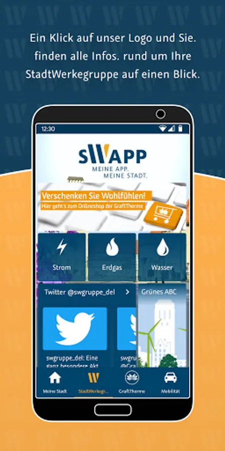 With "sWapp" you can also find the extensive information and services of the StadtWerkegruppe in one app.