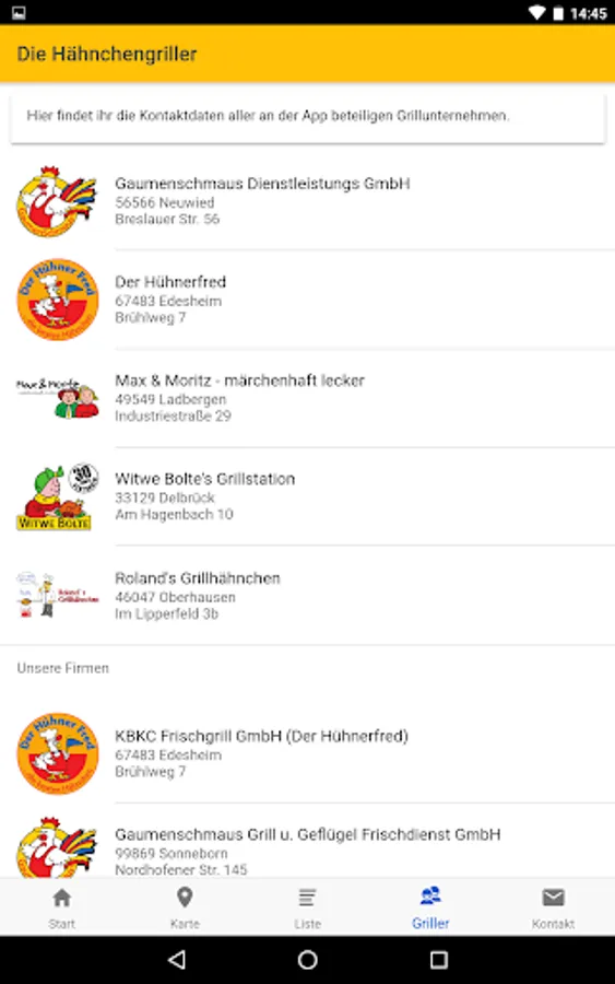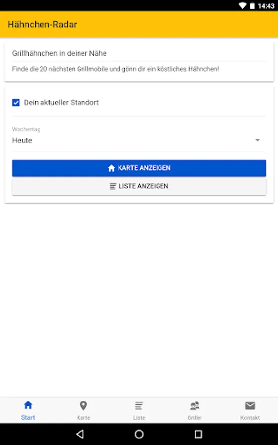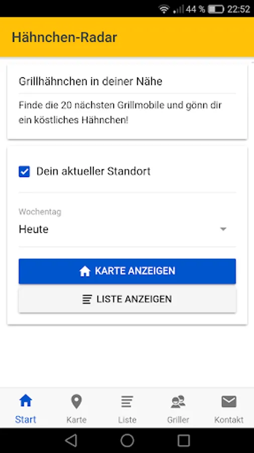 Chicken radar is the app that lets you make reliable mobile chicken grill stations located. No matter where in Germany you're just sojourned, it's what you always know where in your area a mobile grill station by Max & Moritz, The Hühner Fred, Wicked Witch, taste buds and Roland's Grill chicken stands.