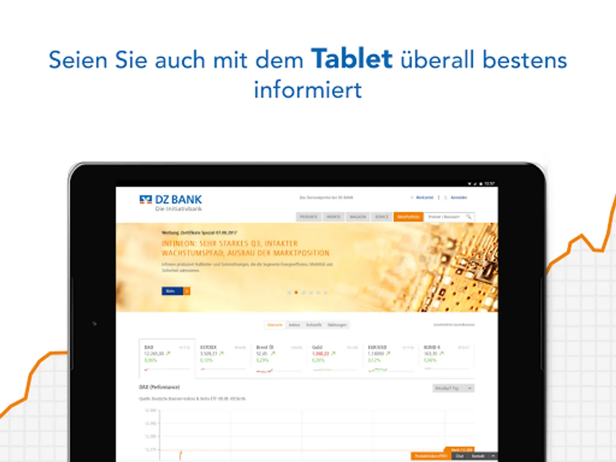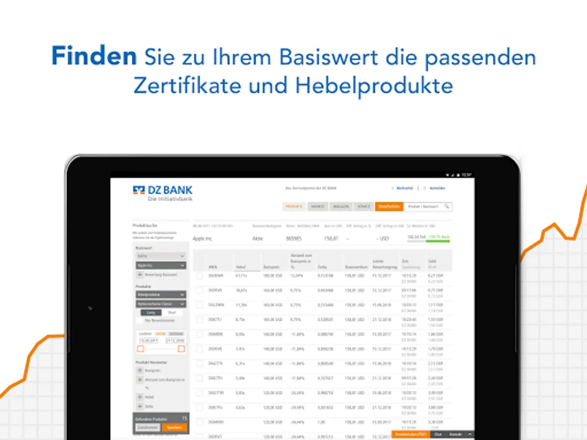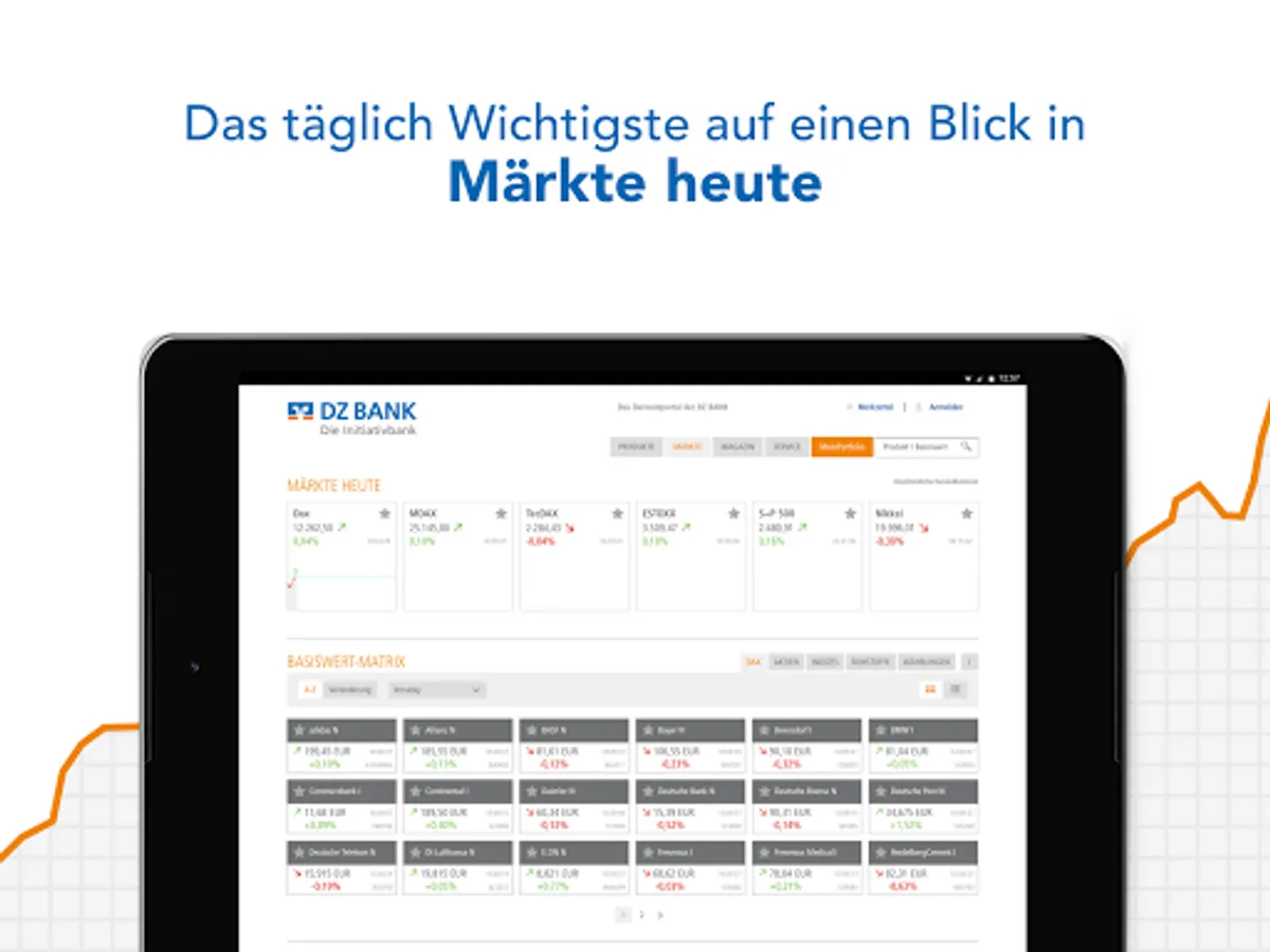 dzbank-derivate.de for smartphones and tablets anytime, anywhere and keep up to date with what moves in the stock market and the financial markets. With this app you can see all financial products of DZ BANK at a glance.