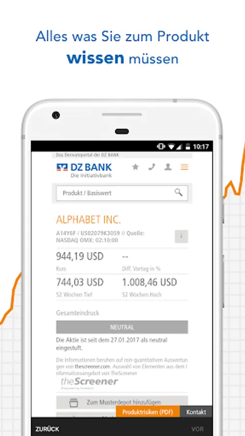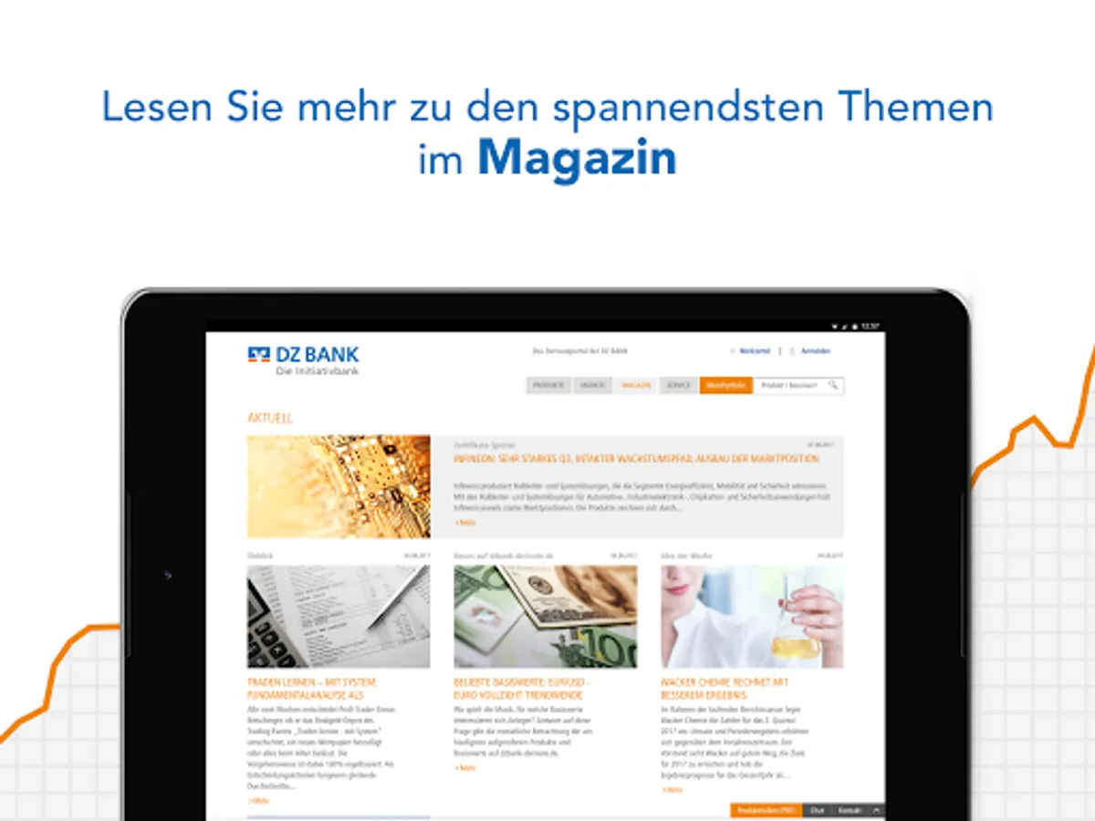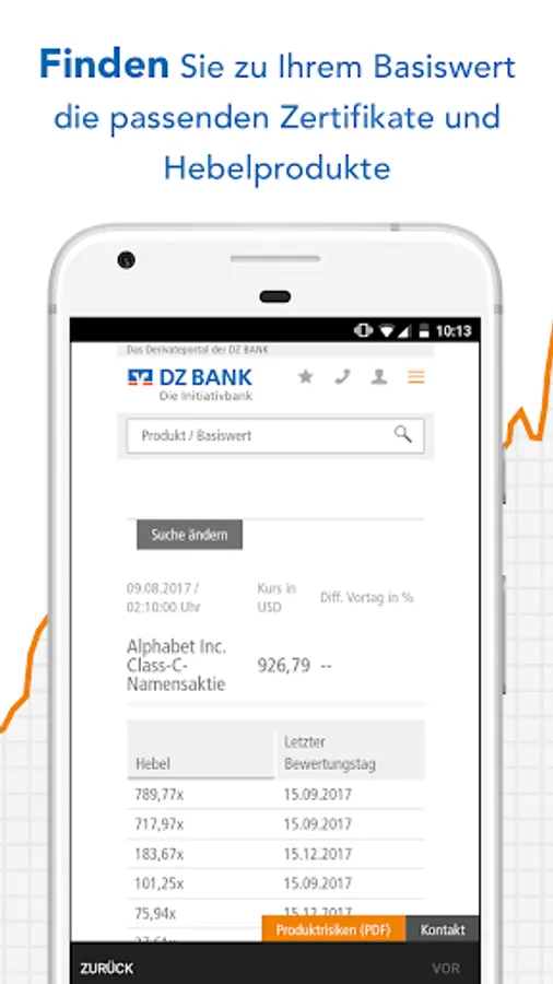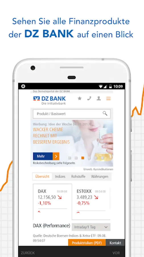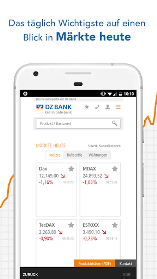 dzbank-derivate.de for smartphones and tablets anytime, anywhere and keep up to date with what moves in the stock market and the financial markets. With this app you can see all financial products of DZ BANK at a glance.