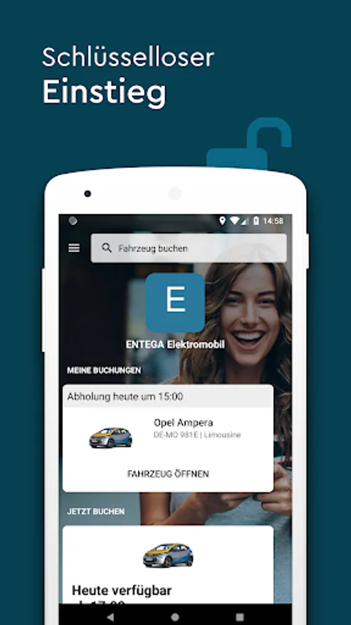Get into the driving of tomorrow today. With the ENTEGA electric vehicles and this car sharing app, you can experience the mobility of the future: simply select the next location of an ENTEGA electromobile and drive off. With the app, the ENTEGA electric vehicles are already available in many communities in southern Hesse - and there are more and more! You can easily book the climate-friendly electric cars in the app and open them comfortably with the app - no car keys.