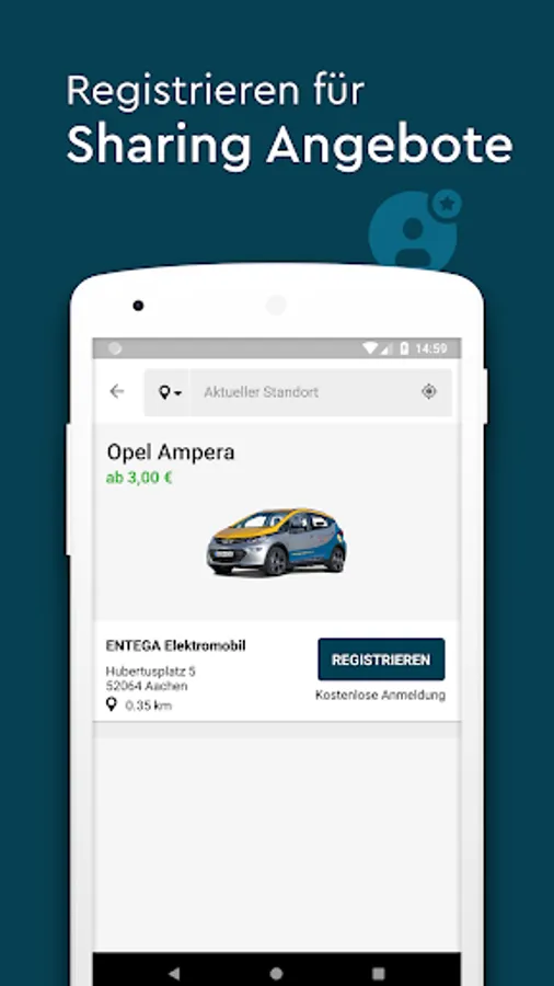 With the ENTEGA electric vehicles and this car sharing app, you will experience electromobility and become a climate protector: Register at www.entega-elektromobil.de. The registration is free and without obligation.