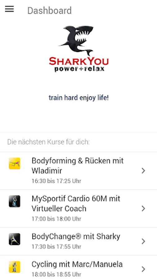 With the SharkYou ClubApp you have your gym always in your pocket with you! You can see easily and quickly book courses, change your membership data and receive news on your fitness club.