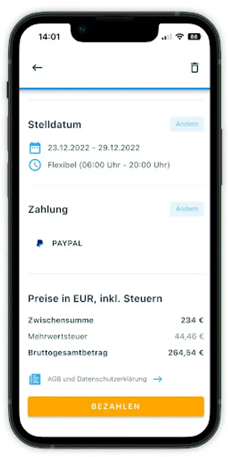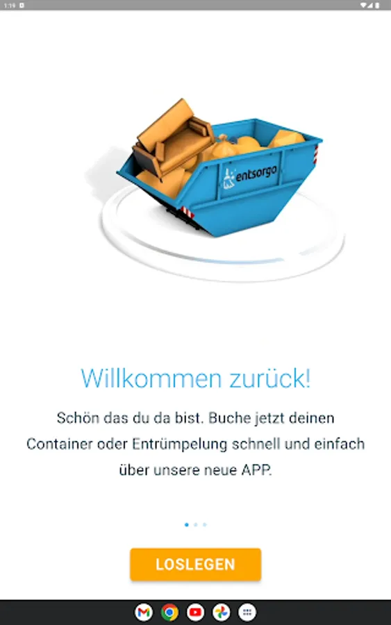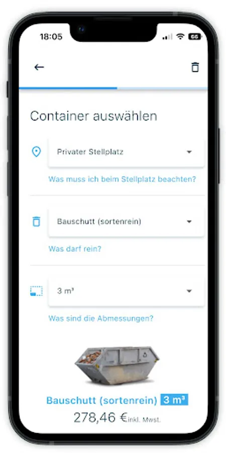 With the entsorgo app, you can book waste containers, clearing out and household clearances easier than ever before. Nationwide and at best prices. Simply open the app, select the appropriate service and book - that's it.