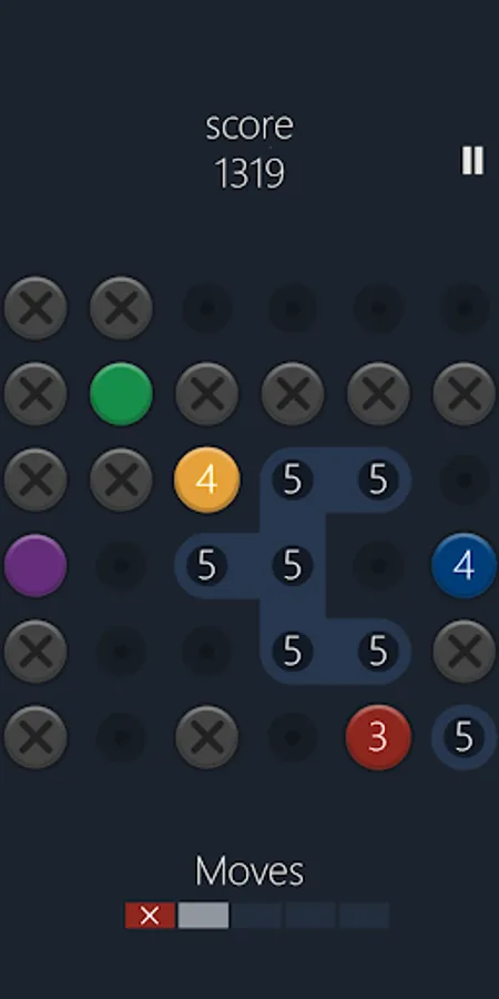Every move brings a new Dot to the playfield. A move can be joining dots or removing groups and single Dots (Single). A Single brings 3 new colored Dots but also a Blocker. Removing a small Group (Tiny) brings one new Dot.