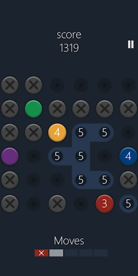 Every move brings a new Dot to the playfield. A move can be joining dots or removing groups and single Dots (Single). A Single brings 3 new colored Dots but also a Blocker. Removing a small Group (Tiny) brings one new Dot.