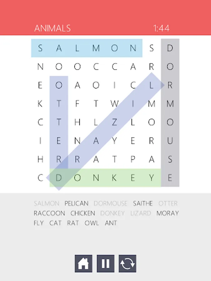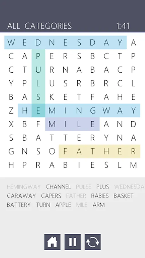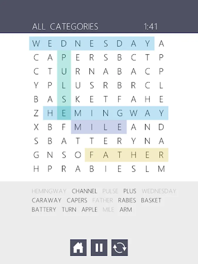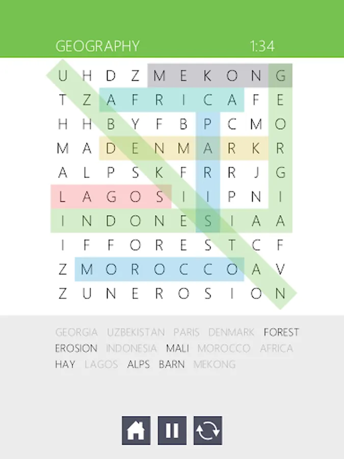Choose your favorite category out of 8 or mix them all together for the ultimative word find challenge.