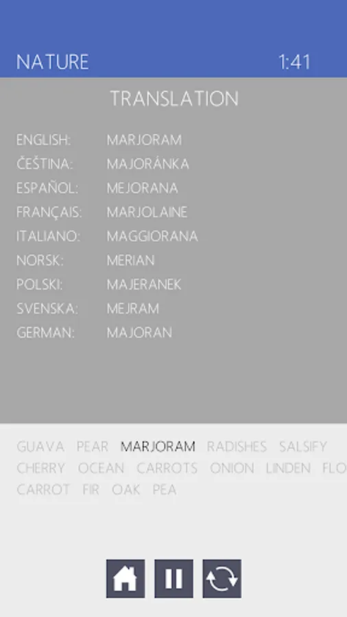 - 2 difficulty levels (normal mode -> reverse words included, easy -> no reverse words)