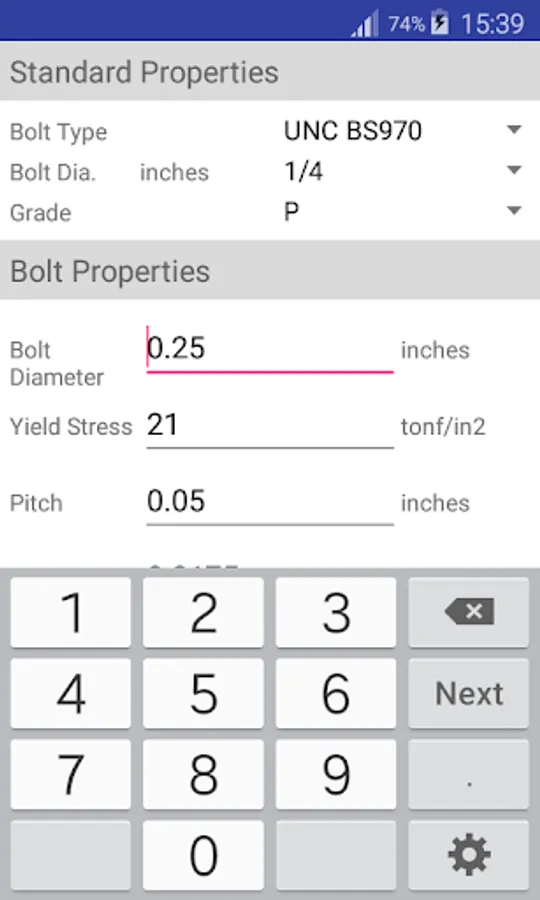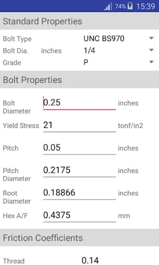 If your bolt is not listed, enter the values of your bolt by hand.