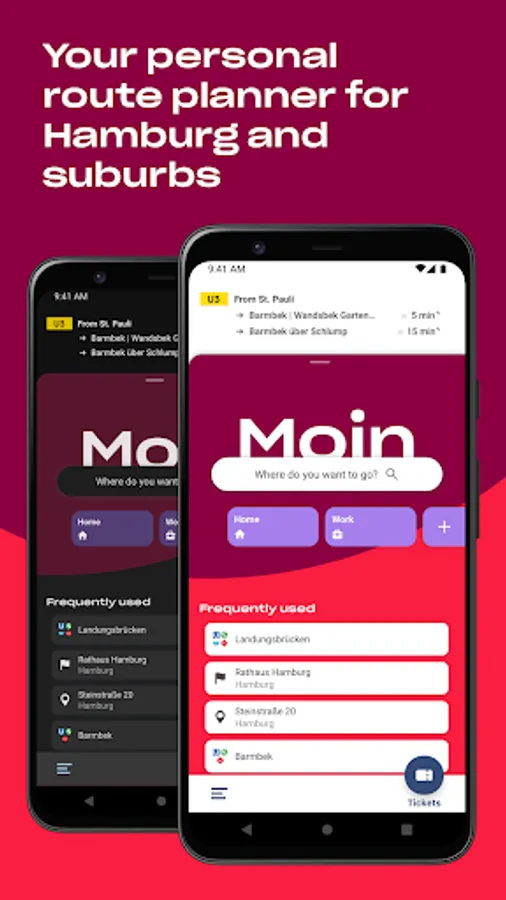 Your hvv app connects you to public transport in Hamburg and the surrounding areas. It always shows you the best way. With the intelligent hvv route planner, you will always find the best connections for bus, subway, train and ferry, including the appropriate mobile ticket.