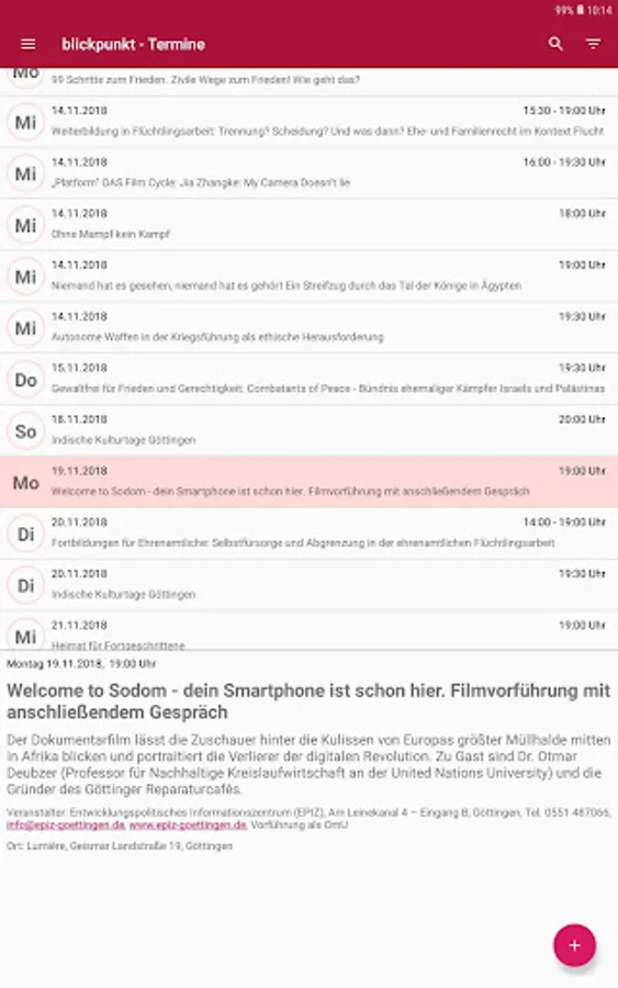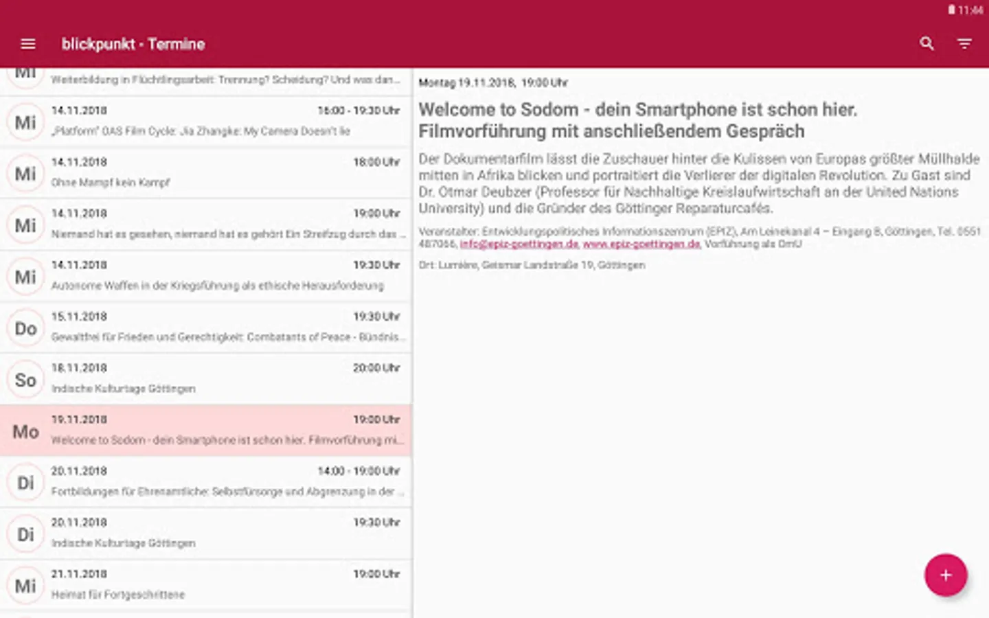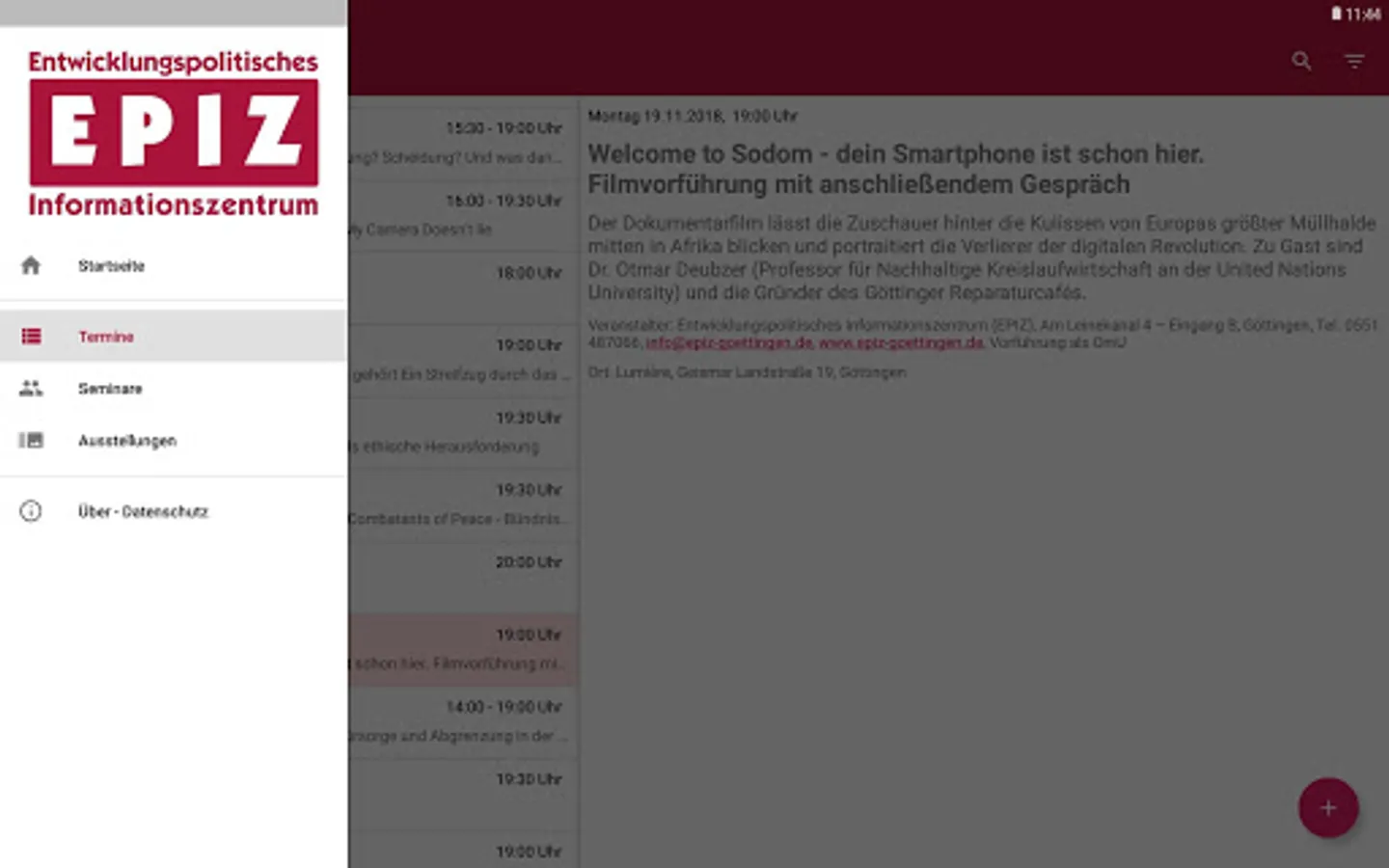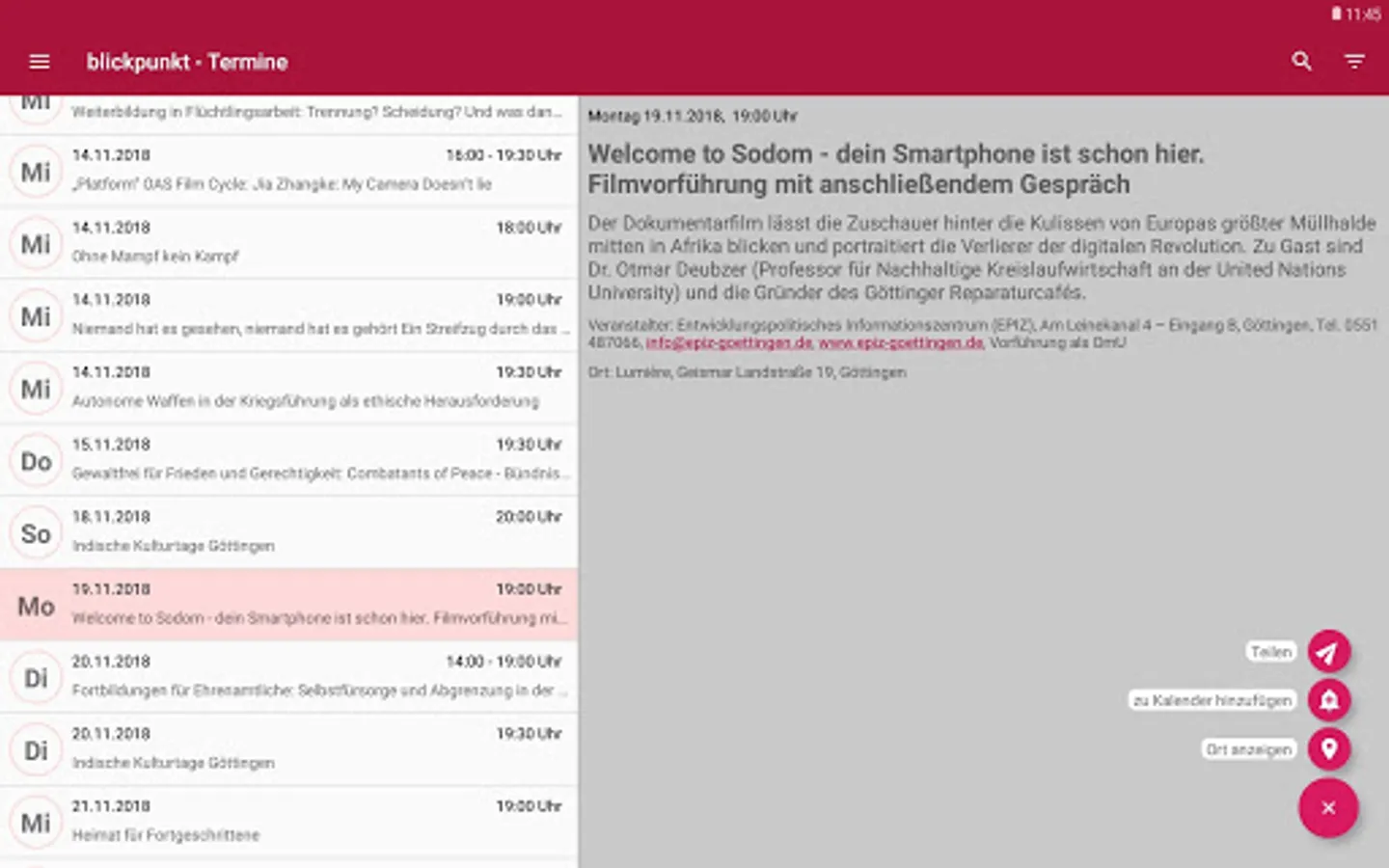 In the app you can view future and past events, seminars and exhibitions with development policy focus in Göttingen and the surrounding area.