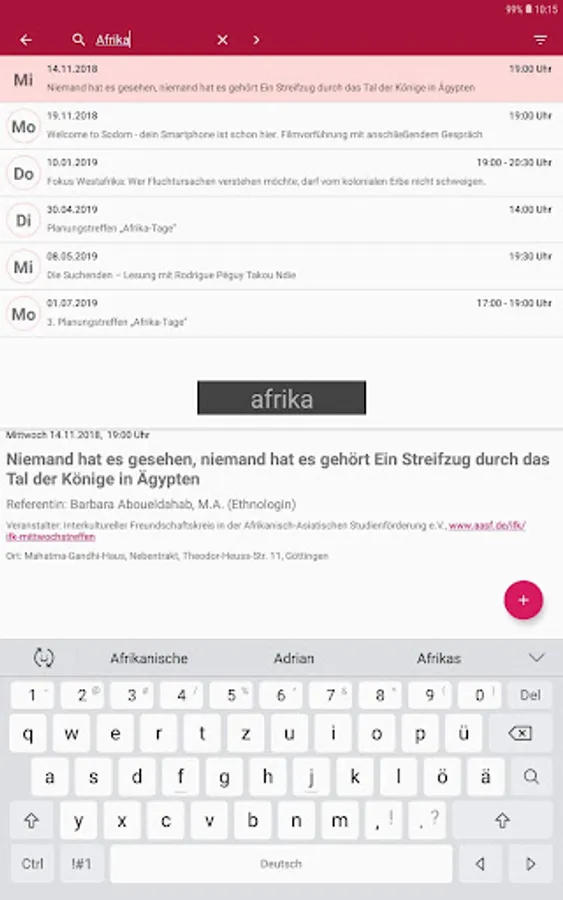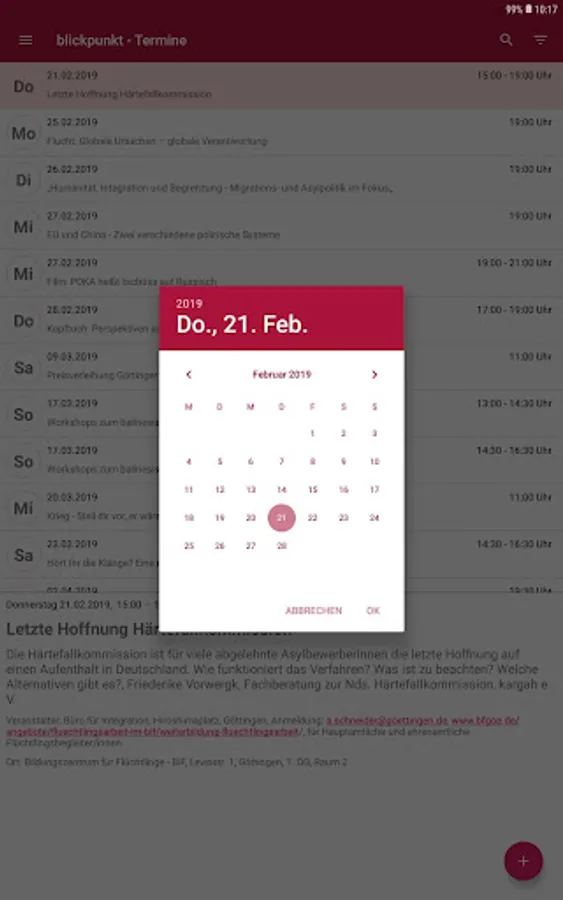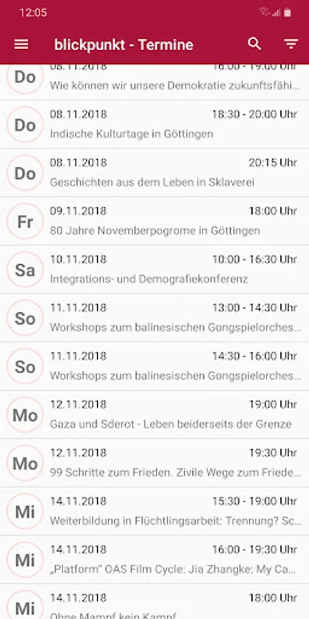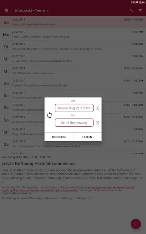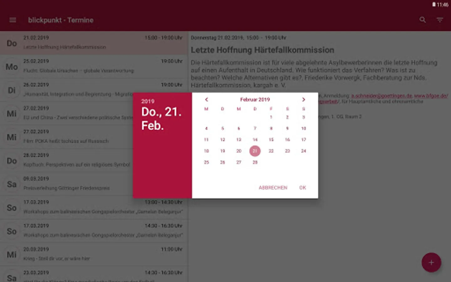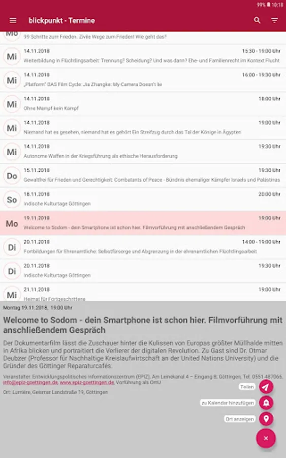 In the app you can view future and past events, seminars and exhibitions with development policy focus in Göttingen and the surrounding area.