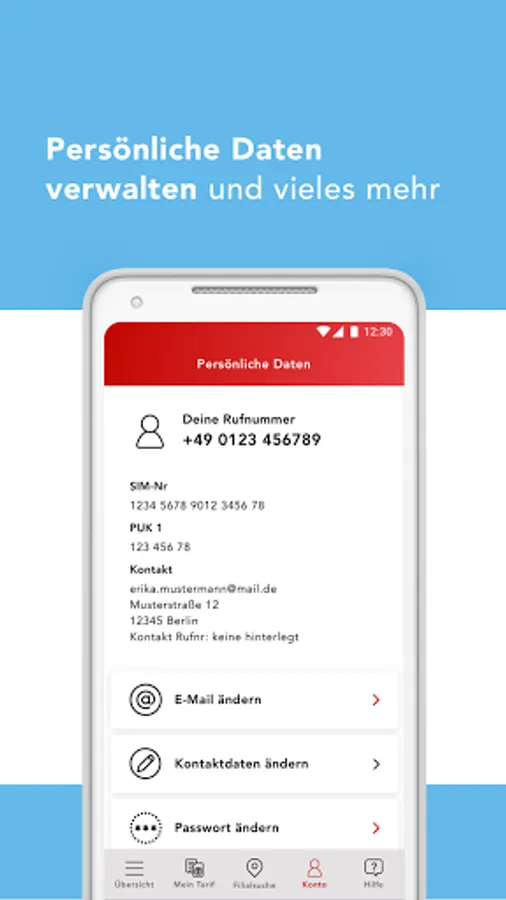 ✔ View contract data, tariff details and booked option