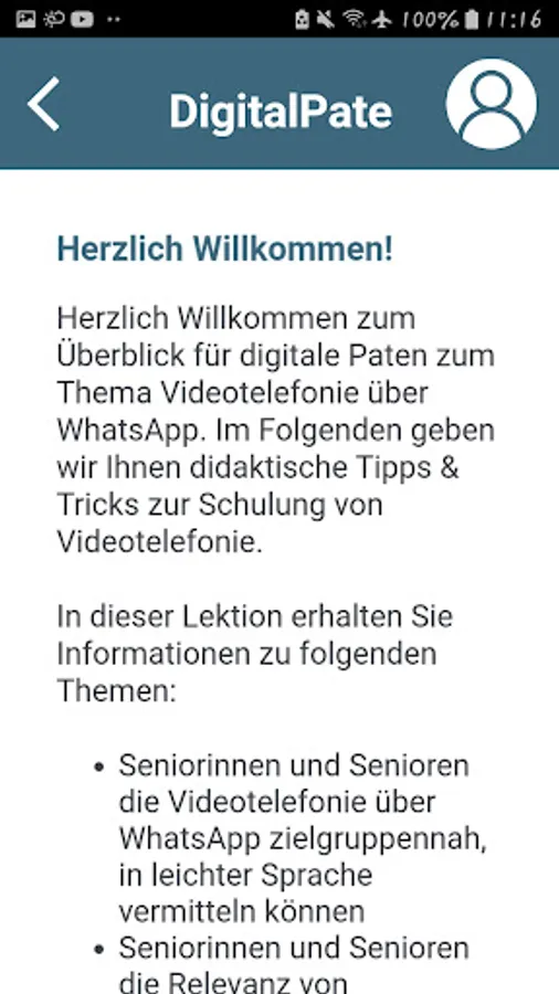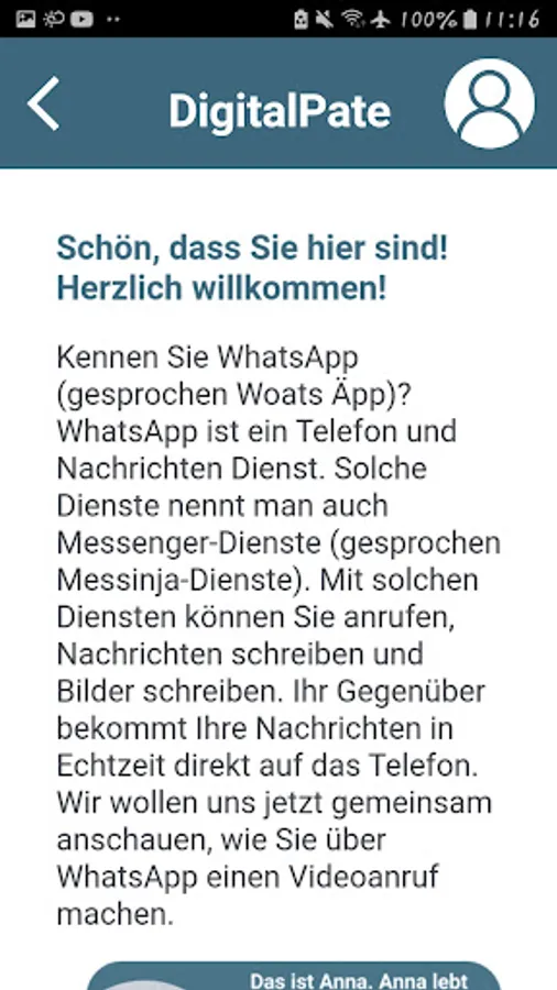 Do you have any questions about video telephony? Or do you need a step-by-step guide on how to video call on WhatsApp? In DigitalenPaten you have a little helper who will support you and help you if you have any questions about video telephony.