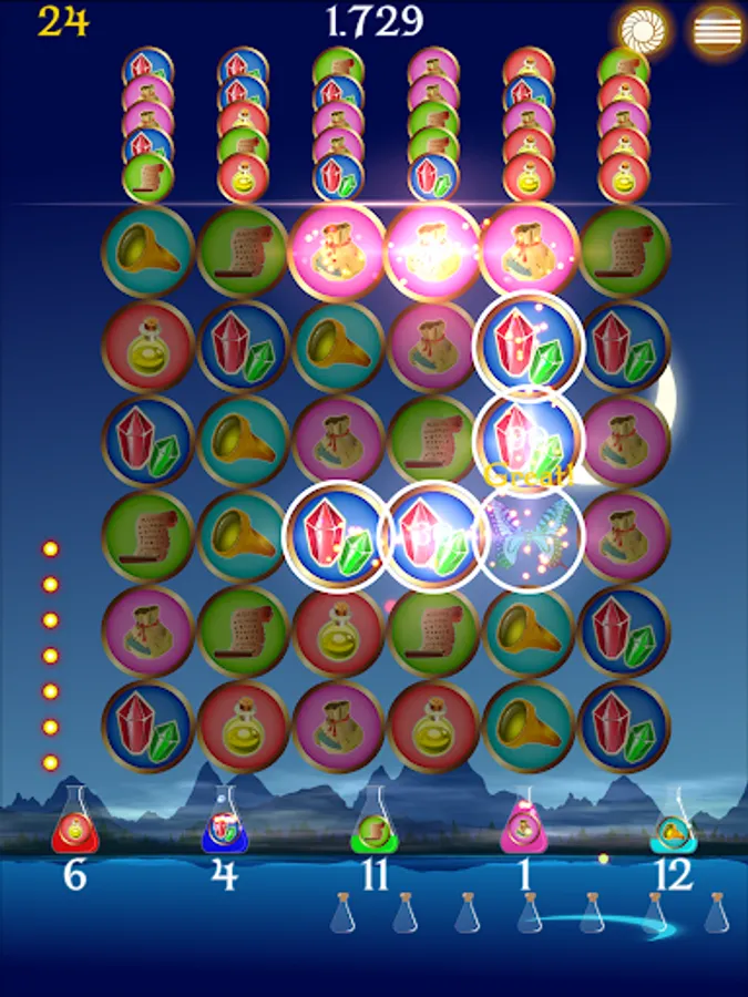 Magic Alchemist Shuffle begins with a starless sky and all 88 constellations have to be restored. To reach this twinkling goal the essence of many magical Imago will be required.