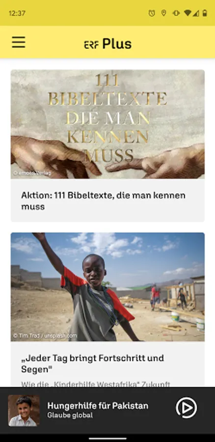 Whether doing housework, in traffic or in the office - ERF Plus is the radio station that accompanies you in your everyday life. The music is relaxed and always new. ERF Plus broadcasts magazines, interviews, news, current reports from church and society, speeches, church services and much more, supplemented with an extensive audio library. Listen to the radio or use the audio library, simply and easily, whenever and wherever you want.