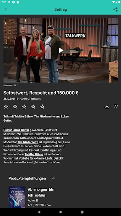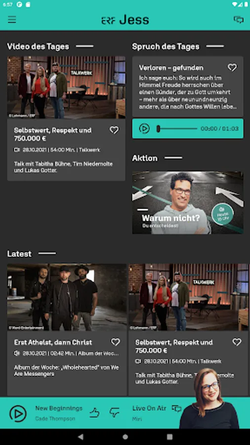 What awaits you in the app: Live radio with the most beautiful pop music. Fresh videos and TV shows every week. Inspiring people as guests in the “Talkwerk”. Talking live about faith with “Why not?” Music and artists up close. We pray for you at “The Prayer”. Gripping stories. Podcasts with added value - sometimes challenging, sometimes funny, always inspiring. Impulses for your everyday life. And much more!