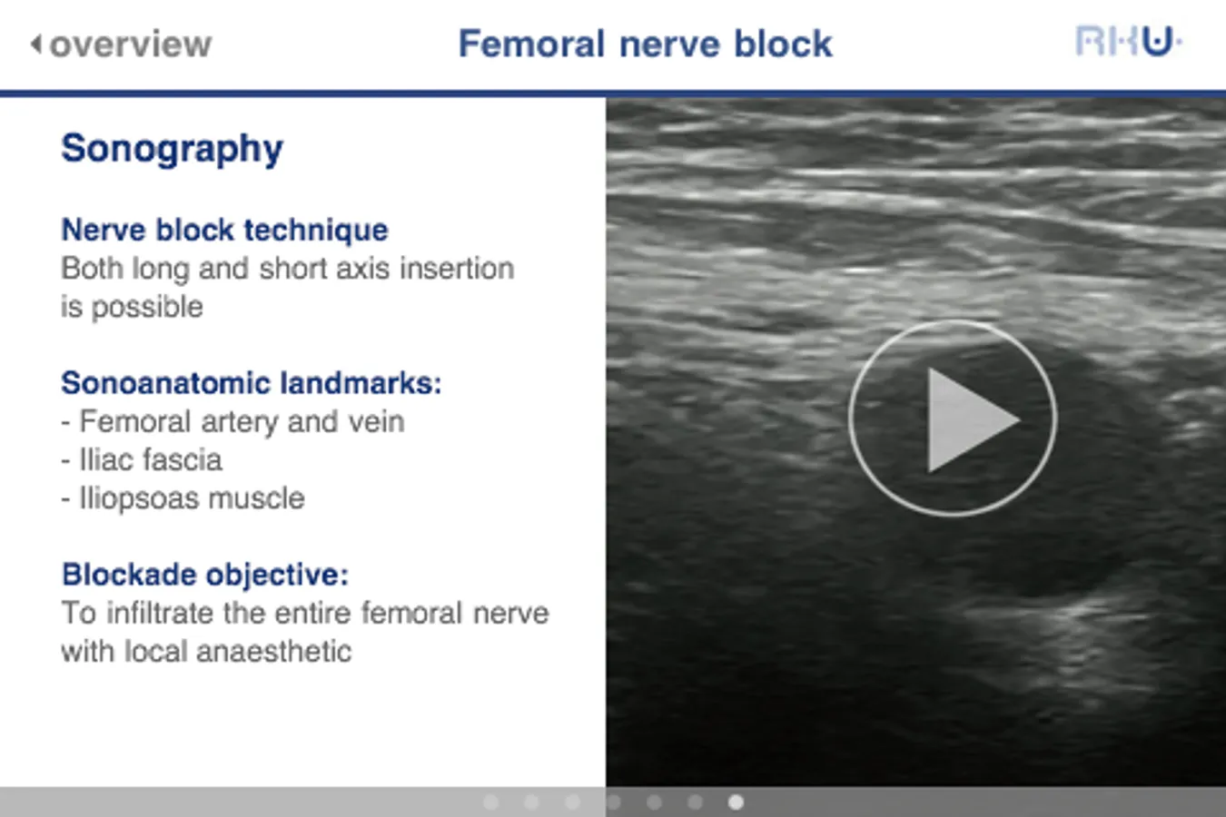 "RKU Compact" is a tutorial on peripheral regional anasthesia. It was developed in cooperation with the Department of Anesthesiology, Intensive Care Medicine and Pain Therapy of the Ulm Rehabilitation Hospital (RKU).