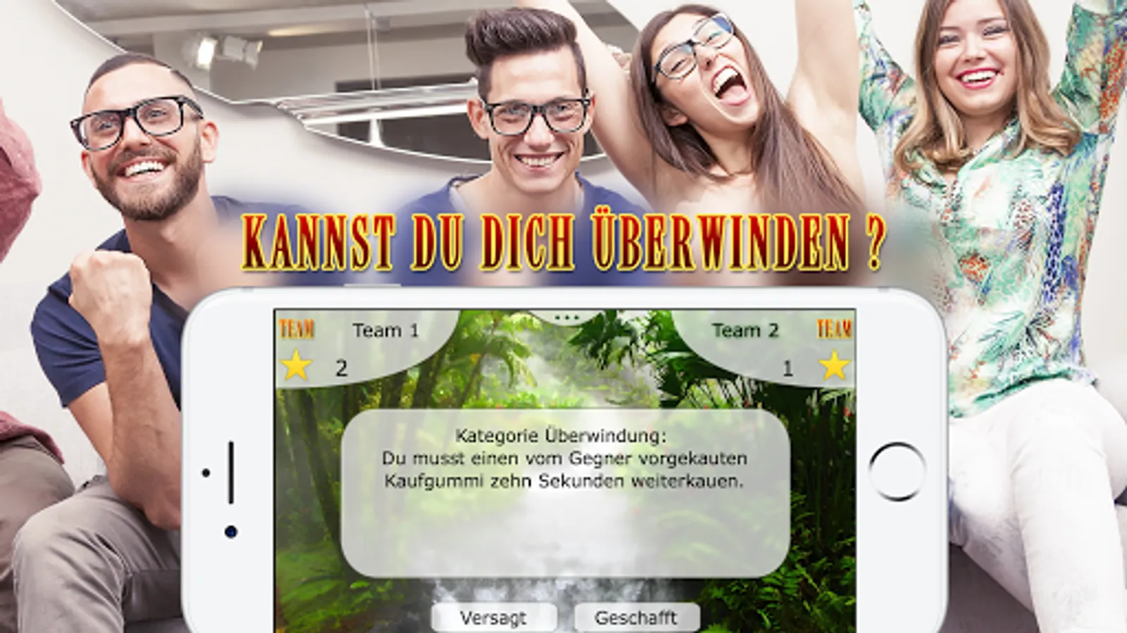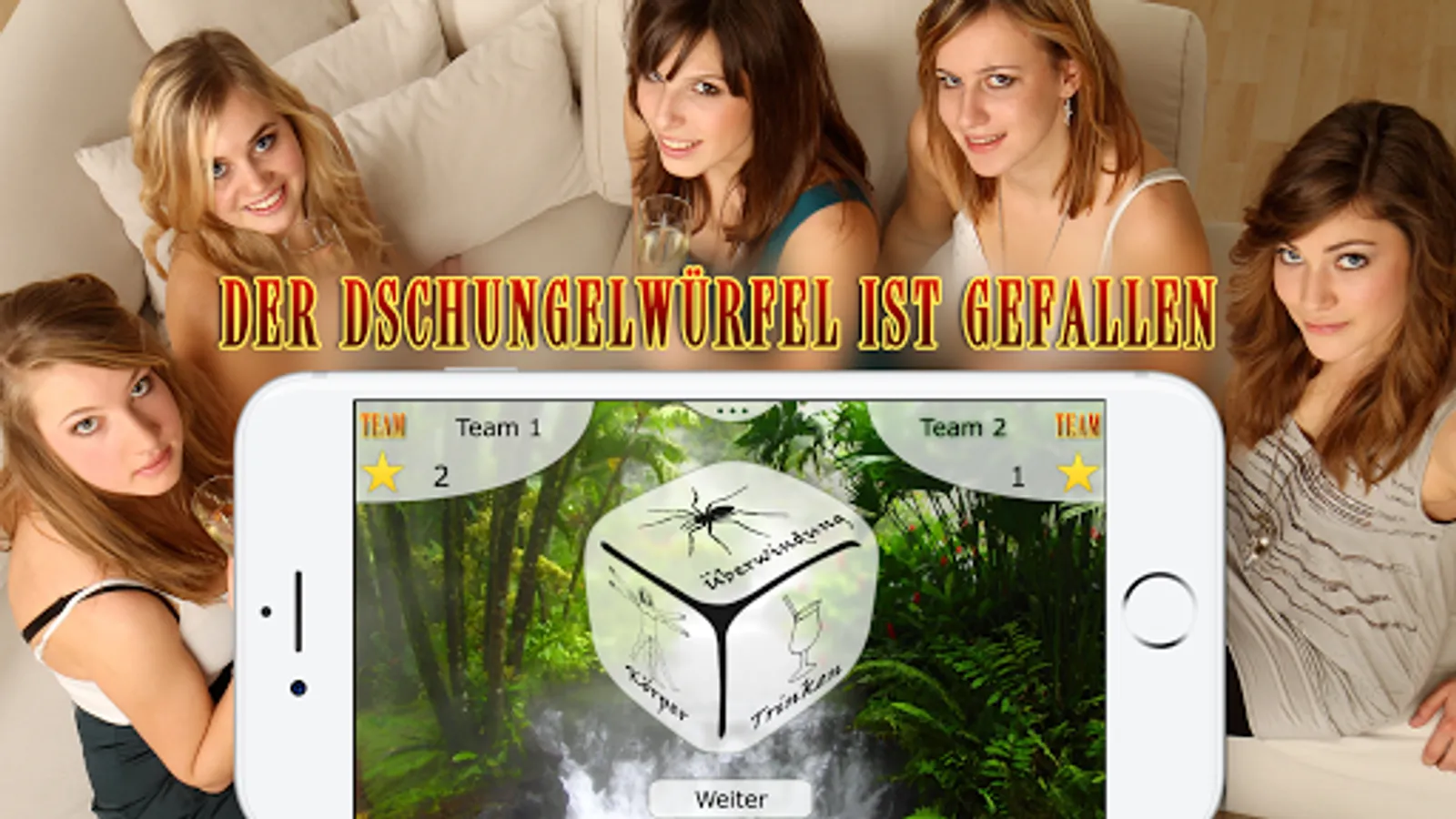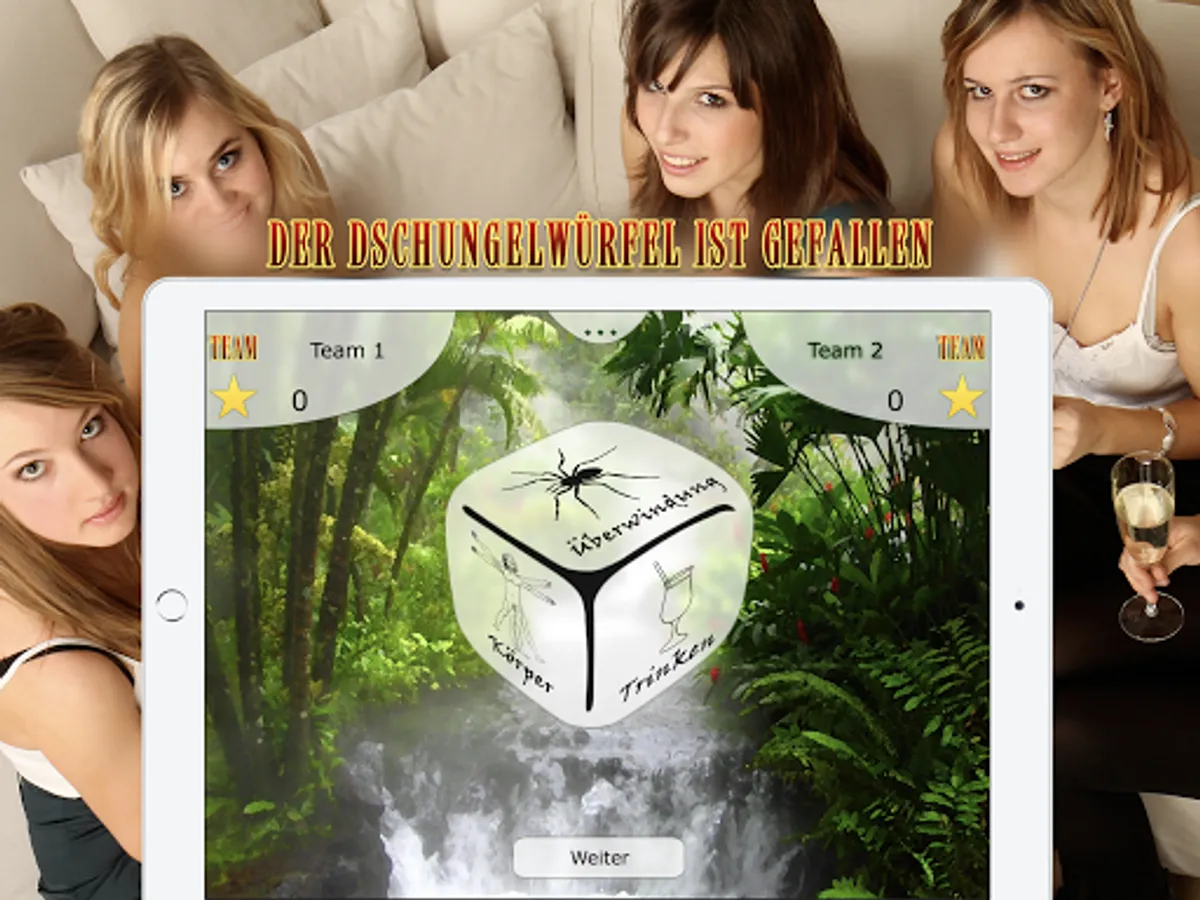 In the app, one of six categories is first decided by a jungle cube. You can choose from the categories: food, drink, body, fun, knowledge and overcoming.