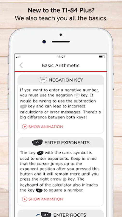 • The app guides you with easy-to-understand explanations and offers the ability to show animations. It's like your virtual teacher.