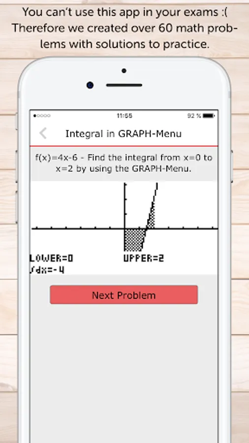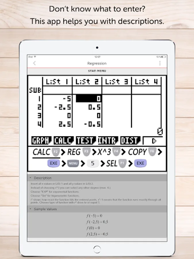 •Every topic shows a detailed instruction through Screenshots of the original graphing calculator how to solve the exercise. You only have to slide to get the next Screenshot which looks similar with your calculator!