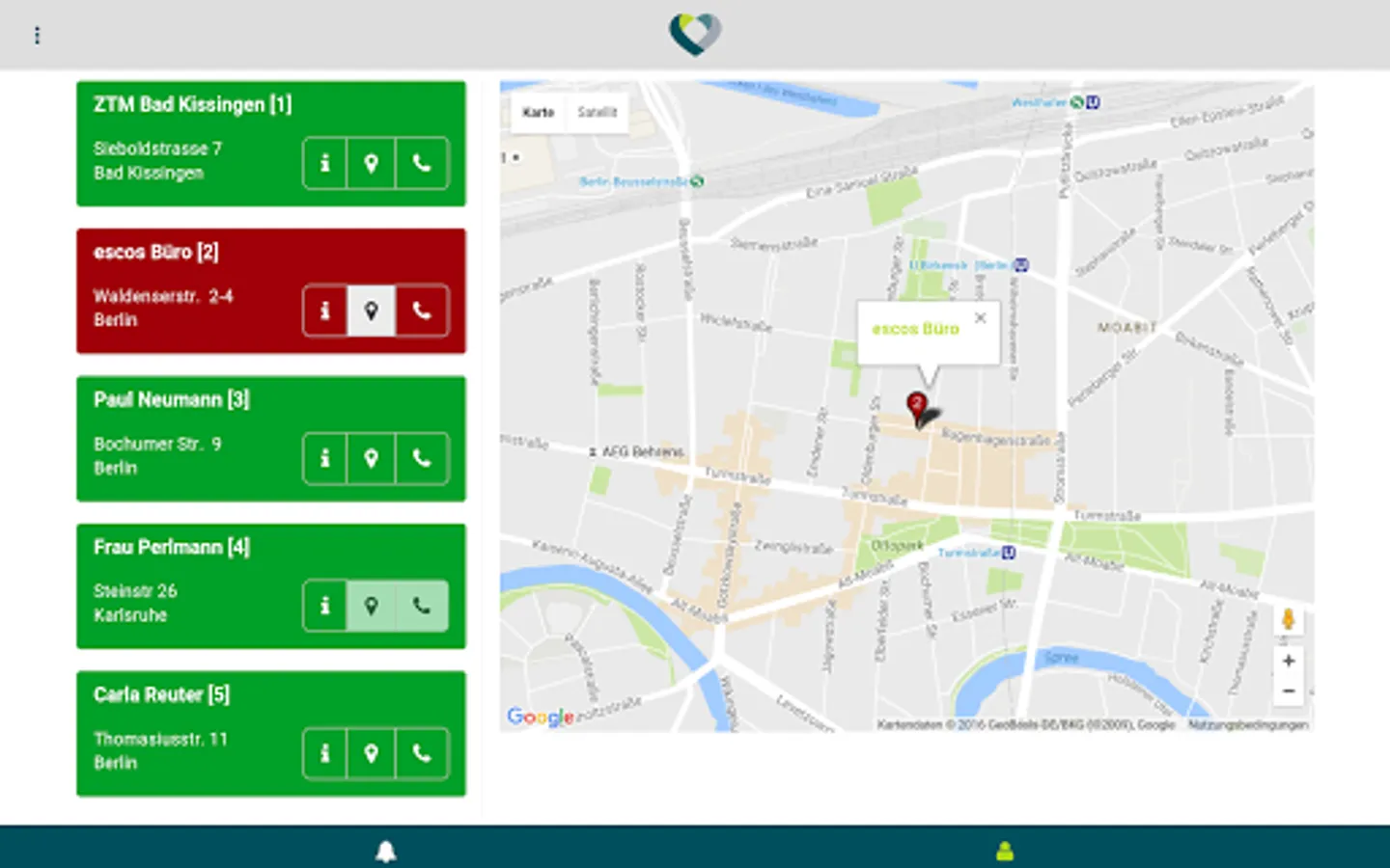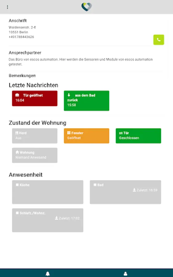 Using sensors that are discreetly installed in residential areas (for example, motion detectors, door contacts, etc.), provides the escos Copilot firmly nursing situations. These are, for example, leaving the apartment or the bed, a fall or a forgotten stove.