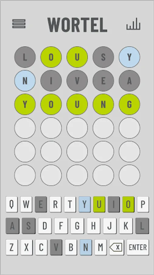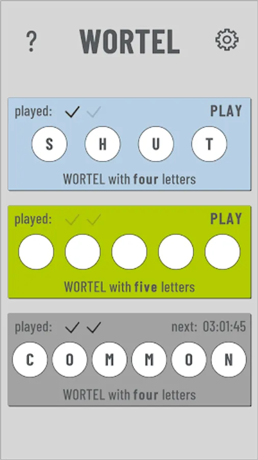 Six new words every day: try to guess them, expand your vocabulary and share your successes with your friends. Find out who can guess the Wortel of the day best! You can choose between four, five and six letter words and you can play in English, Afrikaans, German, Spanish, French and Italian.
