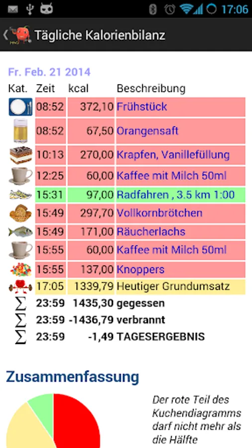 "Daily Calorie Balance PRO" is an app that helps you to lose weight. Charges your calories-in (food, drinks) against your calories-out (base consumption, activities).