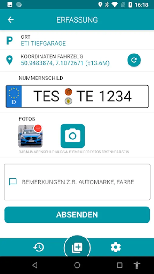 Easy handling: select a parking space, take a picture of the wrongdoer, send it - done.