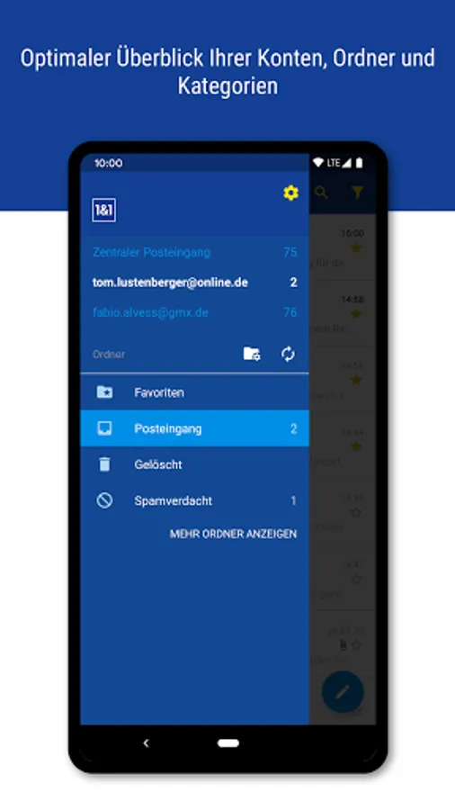 - Mobile access to your 1 & 1 mailbox of your internet contracts