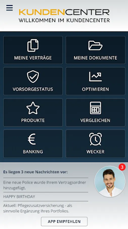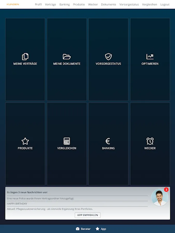 Customer App complements the conventional insurance agent of your insurance advisor to simple and straightforward digital management, support and optimization of your insurance matters.