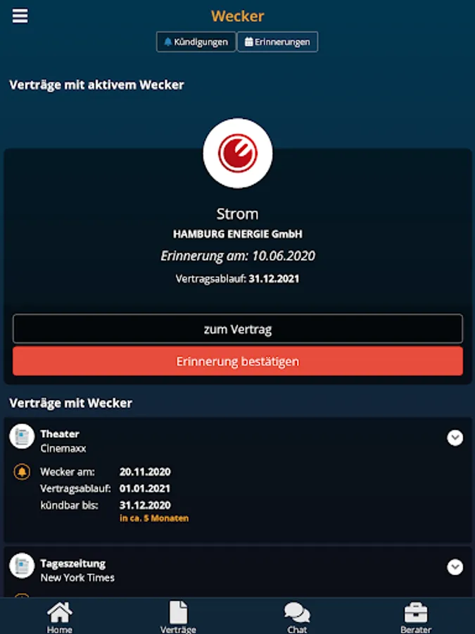 Manage all your contracts for you and your household, in an app.