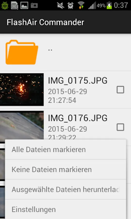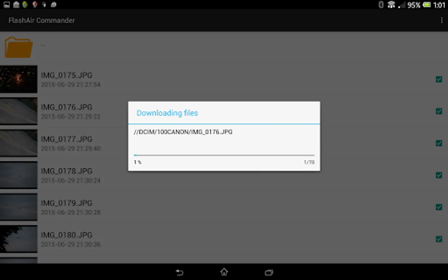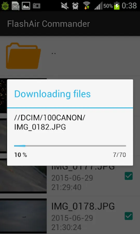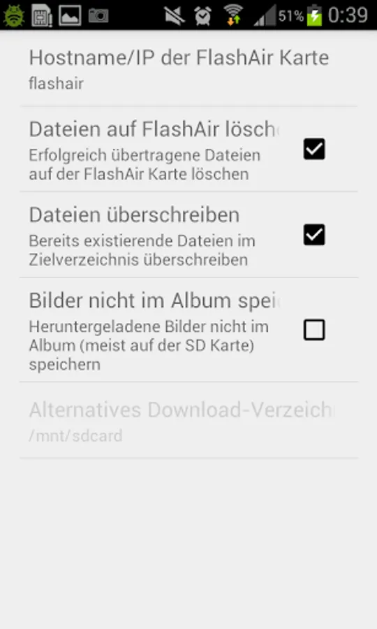 - Automatic transfer of files to the smart phone when the FlashAir wifi is connected.